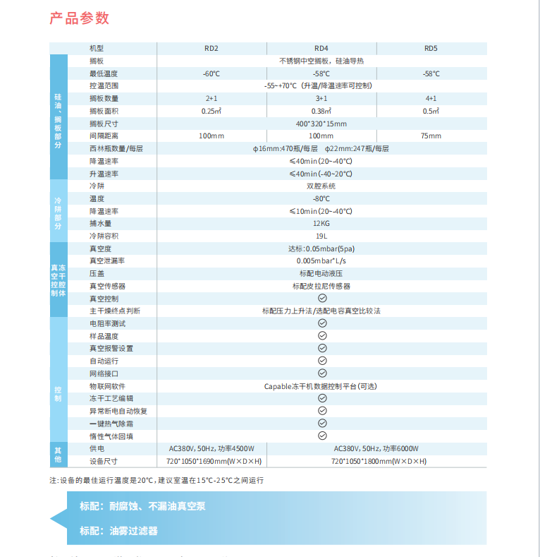 | 网络接口 | √ | 物联网软件 | Capable冻干机数据控制平台(可选) |