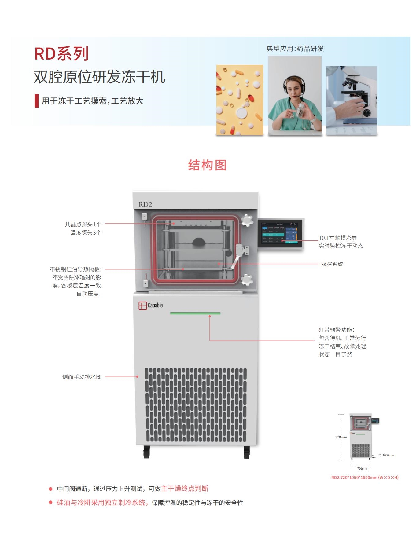 实验室双腔原位研发型冻干机满足高要求的冻干工艺研发需求,支持中试生产。ued官网体育RD2原位冻干机是定位为冻干工艺摸索专家,搁板升降温速率可调,双腔体设计和精准控制系统能很好地满足工艺摸索和放大的需求。